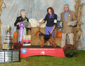 New Champion Darwyn’s Black Magic. Many thanks to Welsh Terrier breeder judge, Mrs. Allison Sunderman.