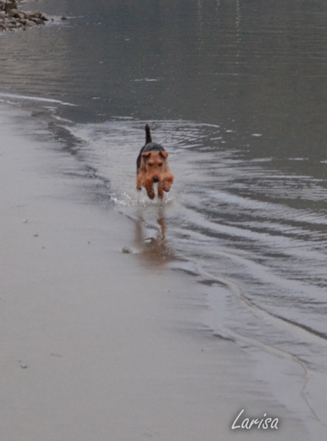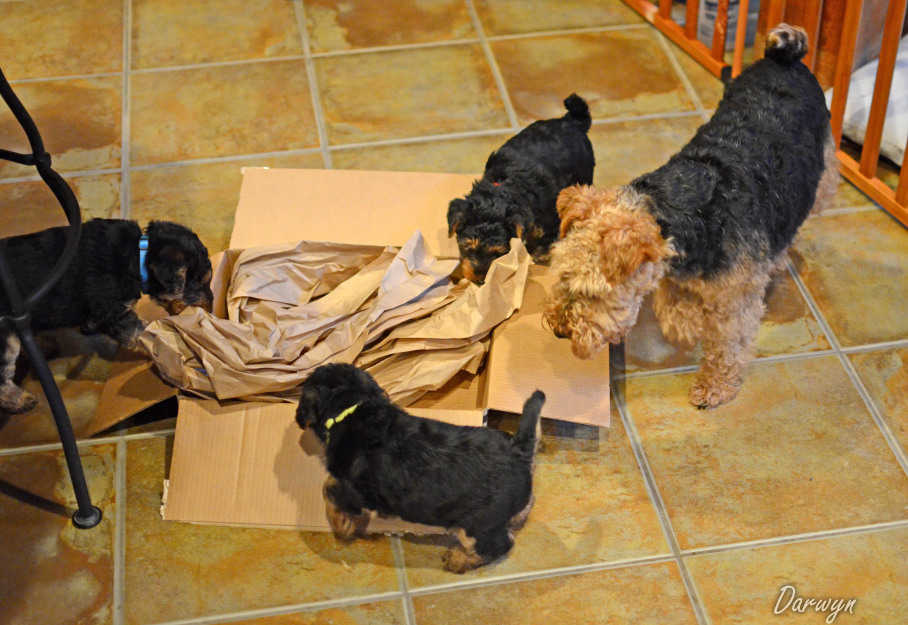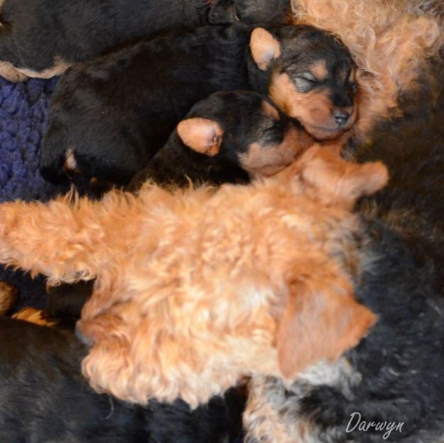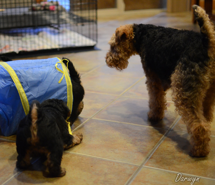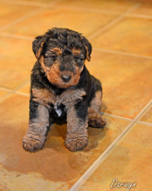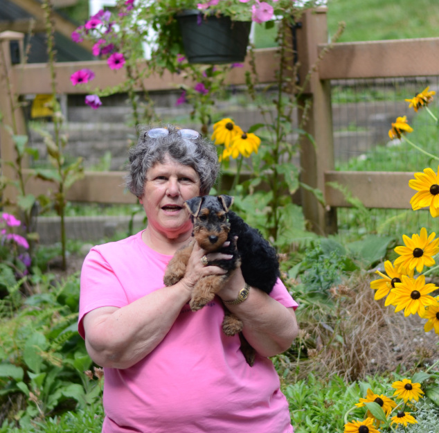 We were fortunate that a family that lived close by was interested in adopting Ella and allowing her to come back to our home to have 2 litters. We knew that we wanted to breed Ella (quality girl wiht a wonderful show record), but this allowed Ella to be part of a family 3 years sooner. A 'win-win-win' situation - she could provide her quality 'genes' back into our line (and our uncommon breed), allow more families to have the joy of a good looking, healthy and enjoyable Welsh Terrier to live with, and she and her family could enjoy more time together while she was still young. We have only done this a few times, but when we choose to do it, like with Ella, we have been so happy, and it is a win-win-win situation for everyone involved. So far, it has always worked out well. In Ella's situation, a young child has become Ella's best friend.